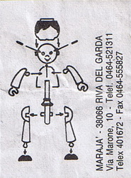 | Hier die ersten bekannten BPZ zu den Charly-Figuren mit dem Verweis auf die Fa. Bogi Design | Dieser Zettel dürfte etwas später anzusetzen sein. Es fehlt die Patentangabe. Rückseite blanko |