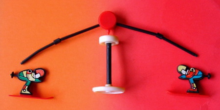 V1= Ständerscheiben rot, Stangenhalter und Ski weiß, Rest schwarz V2= Ständerscheiben weiß, Stangenhalter und Ski rot, Rest schwarz |