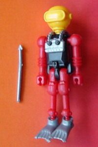 Zwei verschiedene Helme und Gasflaschen Körper schwarz Beine in rot oder grün Helm, Flossen, Waffe und Gasflasche auf der Brust in gelb oder silber |