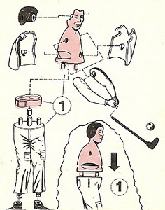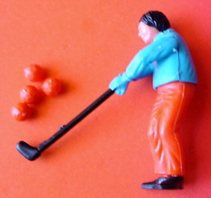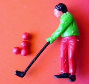 Zubehör je 4 Golfbälle in Hosenfarbe V1= Hose und Golfbälle orange, Hemd blau V2= Hose und Golfbälle blau, Hemd orange V3= Hose und Golfbälle grün, Hemd rot V4= Hose und Golfbälle rot, Hemd grün |