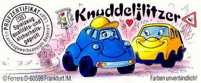 Auflage D = Fahrzeuge gelb/blau, Räder schwarz, Aufkleber für