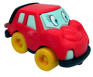 V3= rot mit blauer Kappe, Räder gelb