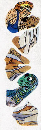 V1= Aufkleber Neandetaler mit Dino-Ei und Dino mit Eiern V2= Aufkleber Neandertaler mit Keule und Dino |