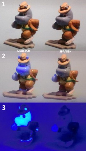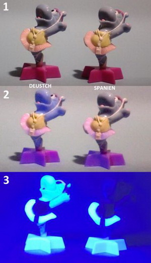 gefeiertes Comeback. Äußerlich gleichen die Figuren den bereits bekannten. Unterschiede sind jedoch unter UV-Licht zu erkennen (Achtung! Auch bei den deutschen Hippos gab es bereits UV-Varianten). |