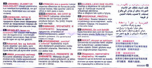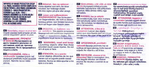Matrix "Das Schleudern von Gegenständen, die nicht zu diesem Spielzeug gehören, kann Schäden hervorrufen. Nicht auf Augen oder Gesicht zielen." |