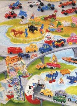Geschäften verteilt und/oder verkauft. - Jedes Puzzles hat einen Rahmen mit der Aufschrift "Le Monde Surpremaint kinder Surprise" (Die Welt der kinder Überraschungen) auf der Vorderseite. - Auf jeder Puzzle-Rückseite ist das komplette Superpuzzle abgebildet. Darüber steht "Joue avec les 4 Magnifiques Puzzles du monde de kinder Surprise" (Spiele mit den 4 großartigen Puzzles aus der Welt der kinder Überraschungen). |