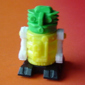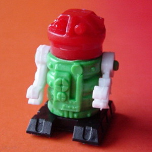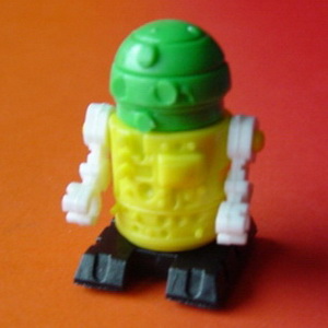 Vier verschiedene Köpfe und vier verschiedene Körper. Verschiedene Farbkombinationen. Arme immer weiß; Fahrgestell schwarz. |