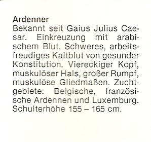 | Kennung | ? | 16 Seiten= Pferdebilder mit rückseitiger Beschreibung |