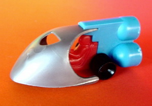 Kuppel, Fahrer und Antrieb jeweils in den Farben silbern, rot, blau. Mittlerweile existieren Fahrzeuge in beliebiger Kombination dieser drei Farben. Welche Kombination tatsächlich im Ei waren ist wohl nicht mehr feststellbar. |