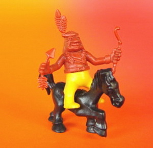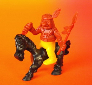 4 Figuren in der Serie Beipackzettel ?? Diese Figuren sind eher steckbare Vollplastikfiguren. Es sind mehrere von der Machart ähnliche Serie (Cowboy, Indianer, Ritter, Astronauten) erschienen. Die Ritter Kunibert Serien zählen dazu. Oberkörper in braun, rotbraun Unterkörper in grün, gelb, blau, hellgelb, schwarz Pferd in weiß oder schwarz |