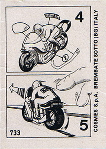 | Verschiedene Farben der Motorräder. Aufkleber mit den Nummern 1 - 4. | ||