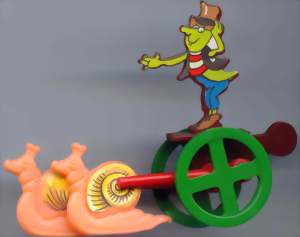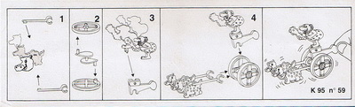 Kstf. Figur und Schnecken gelb, Wagen rot andere Aufkleber |