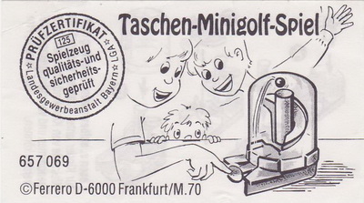 | 657 069 | Taschen-Minigolf-Spiel | Bemerkung |